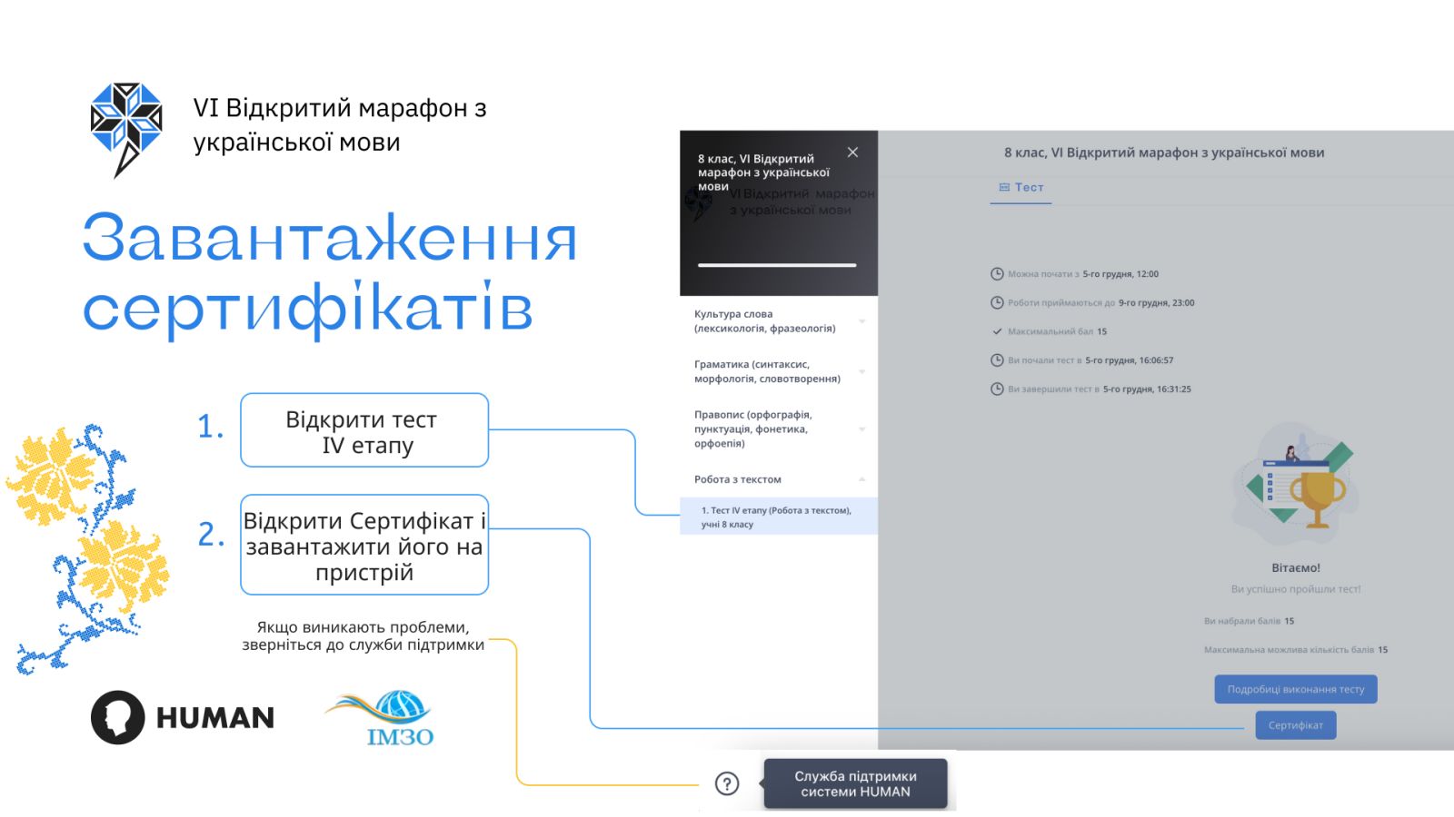 Для завантаження Диплома або Сертифіката учасника VI Відкритого марафону з української мови скористайтеся інструкцією