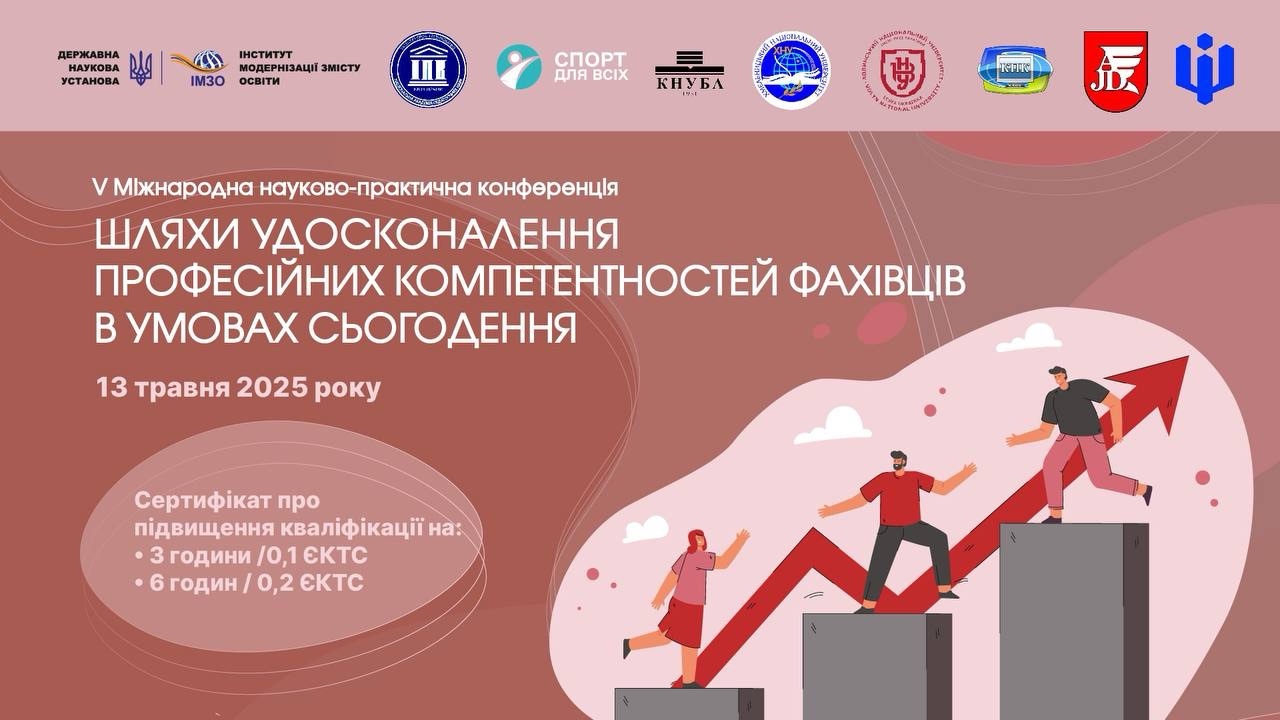 13 травня 2025 року в онлайновому режимі відбудеться V Міжнародна науково-практична конференція «Шляхи удосконалення професійних компетентностей фахівців в умовах сьогодення» (далі – Конференція).