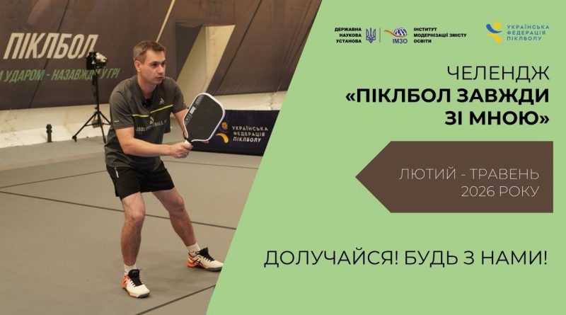 З лютого по травень 2026 року триватиме Всеукраїнський челендж «Піклбол завжди зі мною». (далі – Челендж).