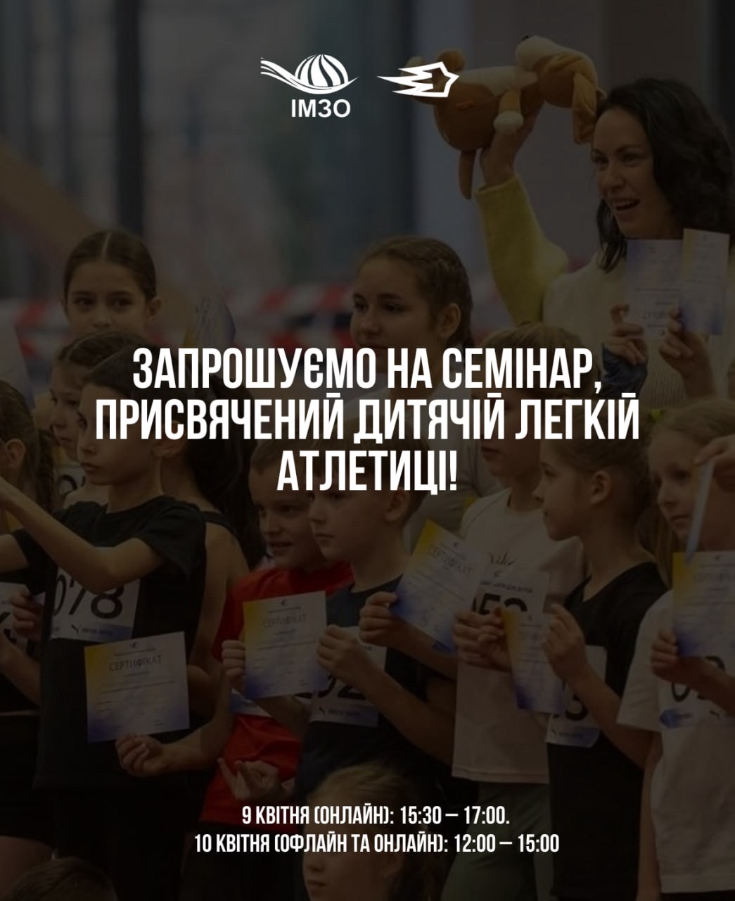 09-10 квітня 2025 року в очно-дистанційному форматі відбудеться семінар «Дитяча легка атлетика як засіб компетентнісного підходу та створення інклюзивного середовища» (далі – Семінар).
