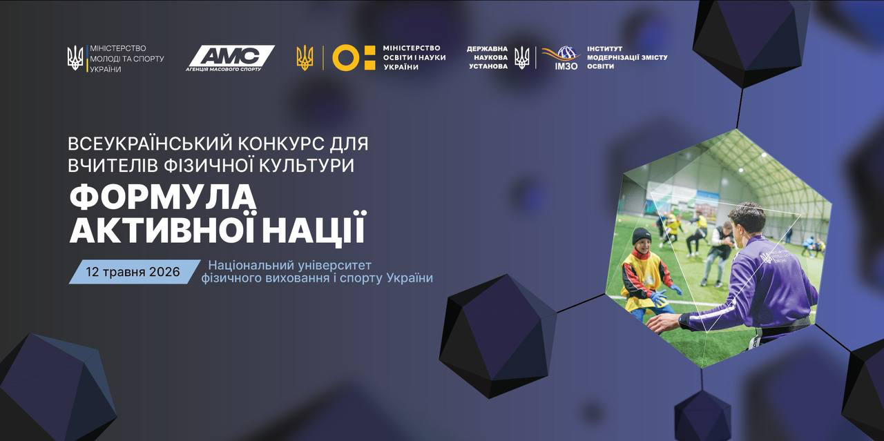 Державна наукова установа «Інститут модернізації змісту освіти» інформує про старт Всеукраїнського конкурсу для вчителів фізичної культури «Формула активної нації» (далі – Конкурс).
