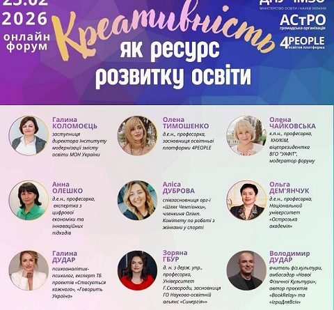25 лютого 2026 року відбудеться Всеукраїнський онлайн-форум «Креативність як ресурс розвитку освіти» (далі Форум).